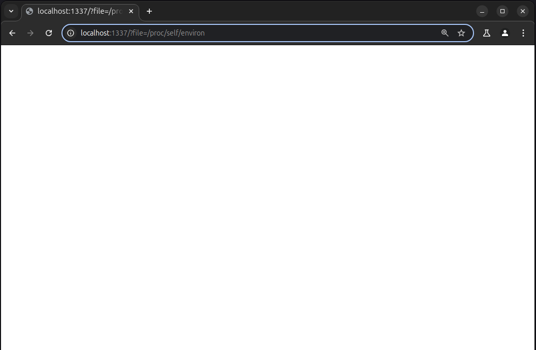 Since we know environment variables are stored in /proc/self/environ, let's try querying that to retrieve the flag: